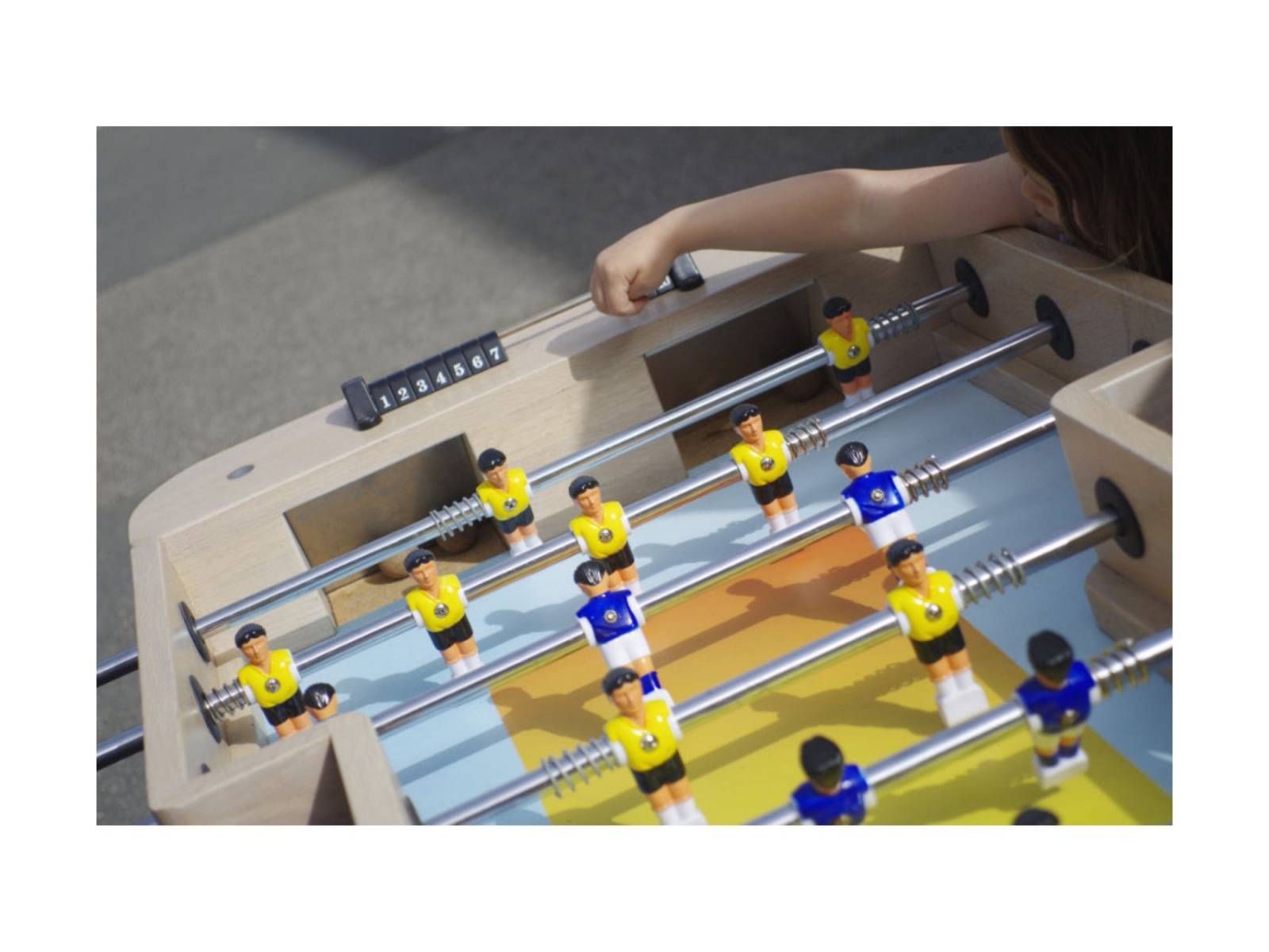 Avec ses 10 barres, ses 28 footballeurs et ses 4 buts au total, il donne la possibilité de jouer à 6 personnes simultanément. Sa forme pas très académique faisant penser à un haltère déstabilisera les experts du babyfoot classique.