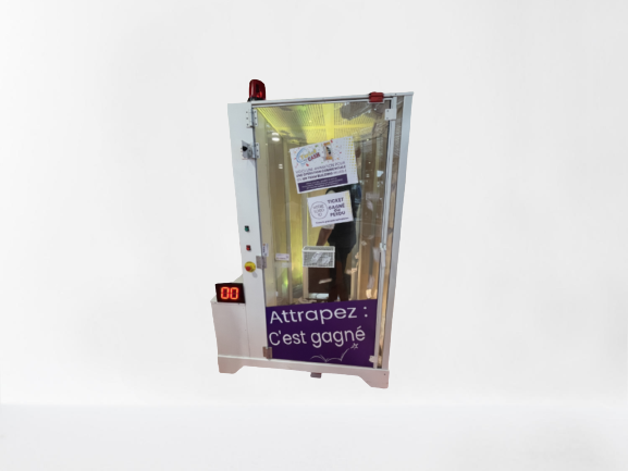 Découvrez notre animation cadeau box, également appelé cash machine ou encore cabine a billet. Son utilisation est très simple, il suffit de vous placer à l’intérieur de la machine et d’attraper un maximum de billet à travers une tornade. Un seul de tous ces billets sera votre ticket gagnant vous permettant de gagner un lot ou un cadeau selon votre évènement.