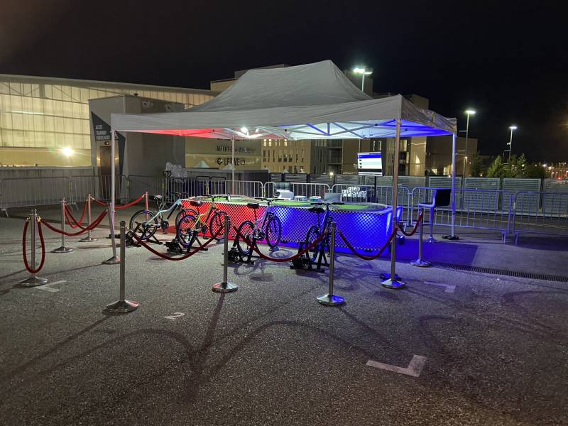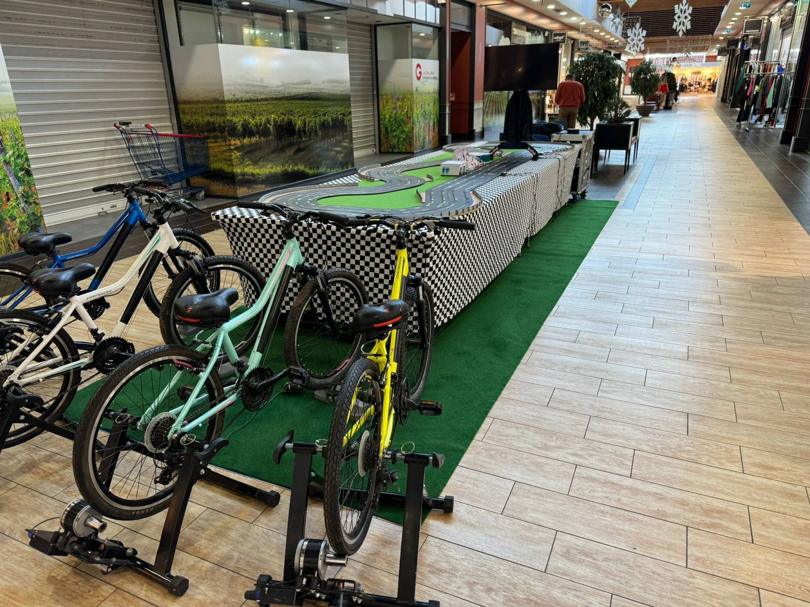 Imaginez un grand circuit électrique  type "slot grand prix"  équipé de 4 pistes pour 4 voitures, camions ou autres types de véhicules reliés à 4 vélos pour amener l'électricité à l'animation. Chaque vélo est relié à une piste, le but est donc de pédaler le plus vite possible pour faire avancer son véhicule... Le circuit est relié à un système informatique retransmit sur un écran pour avoir les temps de passages et les classements de chaque pilotes.