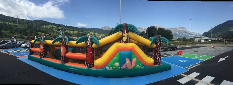 Obstacles, tunnels, toboggans, voilà ce qui rythme les 12 mètres de longueur de ce parcours gonflable.