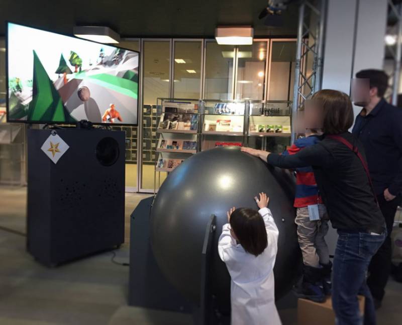 Ce jeu transforme une boule géante en manette de jeu à taille humaine, en la faisant bouger, vous dévaler une falaise dans un jeu vidéo !