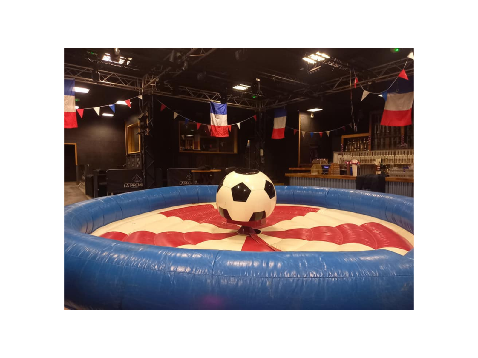 Découvrez notre animation rodéo football. Il s’agit exactement du même principe que le taureau mécanique. Le but du jeu reste le même, c'est-à-dire rester le plus longtemps possible sur le rodéo sans tomber. Vous pouvez modulés la vitesse mais également la rotation du rodéo comme bon vous semble.