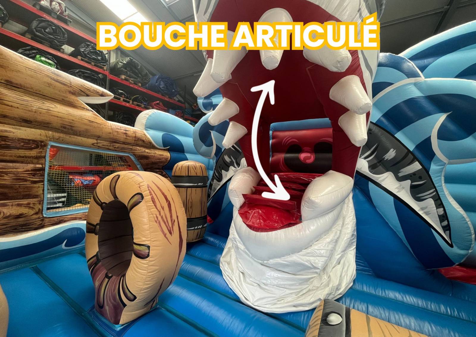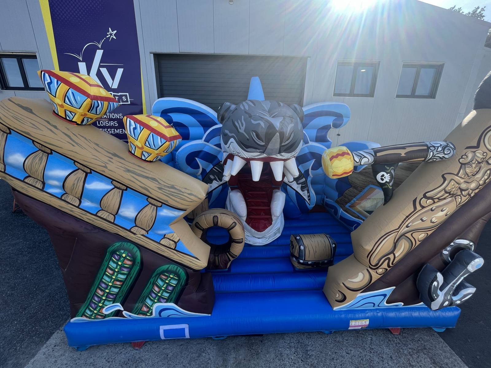 Découvrez notre structure « Shark Attack » absolument terrifiante ! Notre structure montre une attaque de bateau pirate par un requin sortie des plus profond des abysses, idéal pour un grand nombre d’enfants jusqu’à 14 personnes pour affronter notre monstrueux mégalodon, que vous soyez petit ou grand.