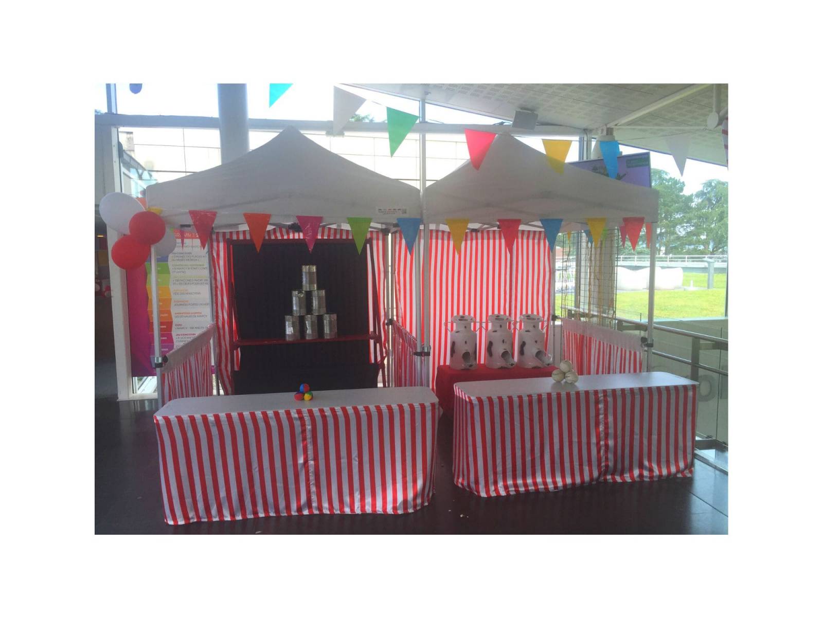 Chez KV EVENTS, nous vous proposons un ensemble de jeux forains avec leurs tonnelles et leurs décorations. Un plus des pots à lait, il y a le classique chamboule-tout, ou le stand de fléchettes par exemple.