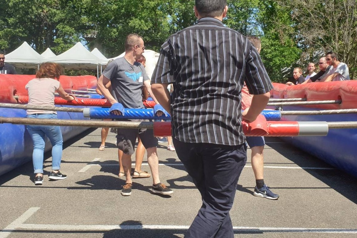 - le babyfoot géant 14 joueurs pourras développer votre esprit d'équipe tout en développant la compétition dans la bonne humeur. Nous disposons aussi de toutes une gamme de flippers et autres jeux automatiques qui ferons de magnifique animations tout au long de réception dans vos entreprises...